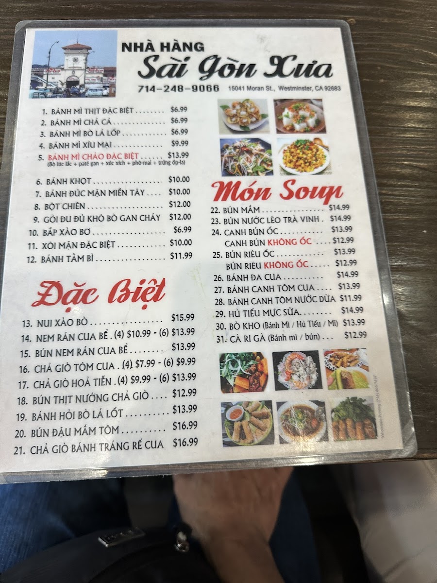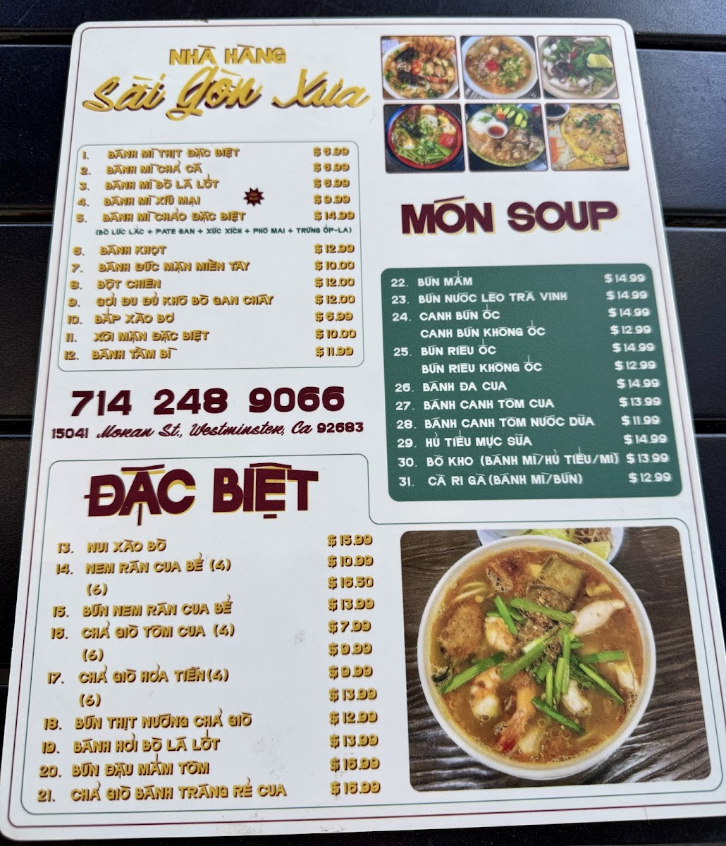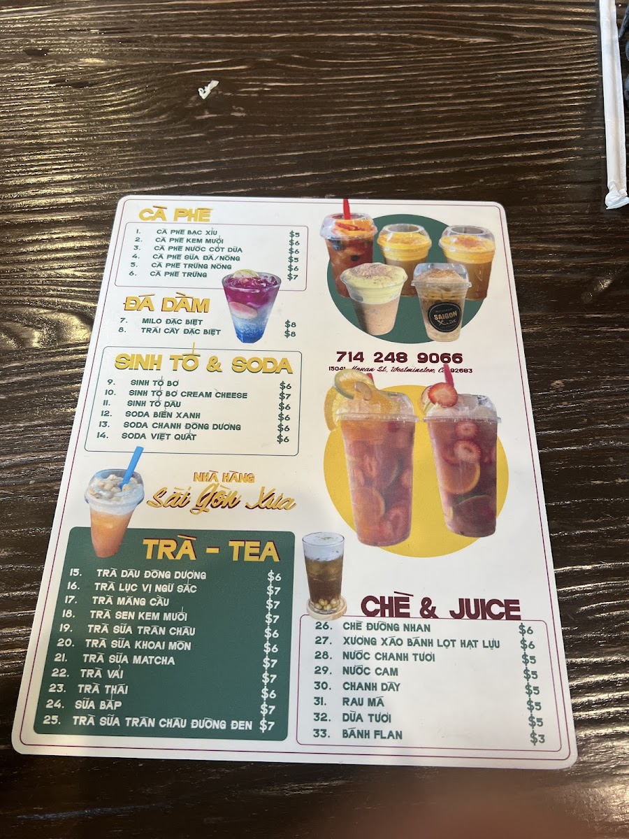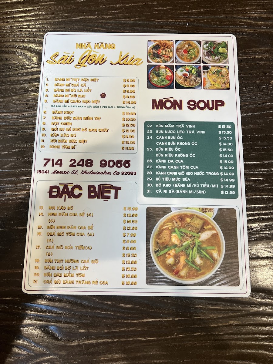 Step into the heart of Vietnamese cuisine with the Sai Gon Xua Cafe And Restaurant Menu, where every dish tells a story. Located at 15041 Moran St, Westminster, CA, this charming spot offers an authentic taste of Vietnam, blending fresh ingredients and traditional flavors. From the rich, aromatic pho to the sizzling banh xeo, every bite is a delightful journey into the heart of Vietnamese culture.